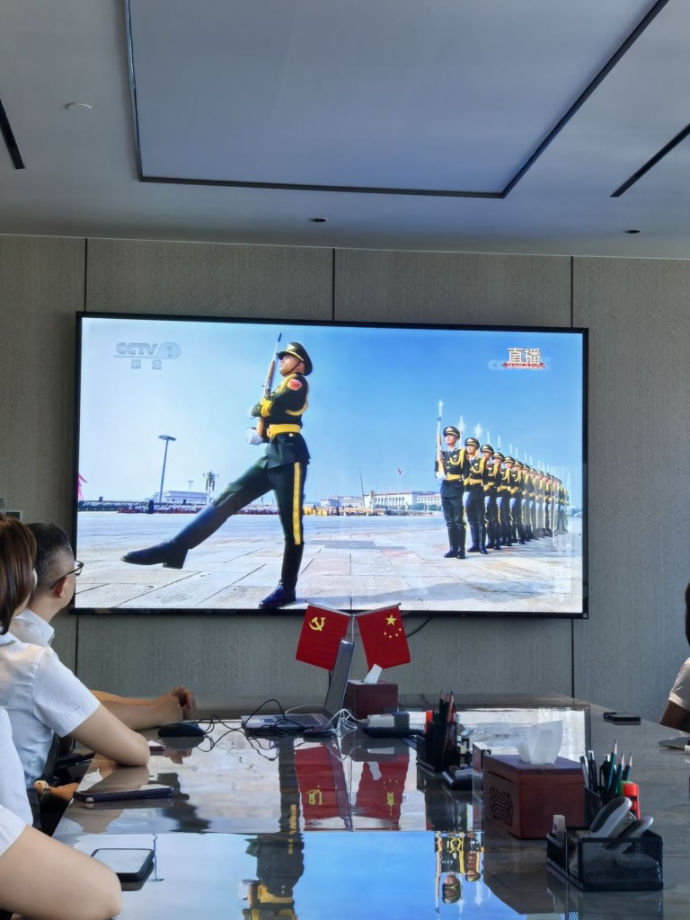 9月3日,是中国人民抗日战争暨世界反法西斯战争胜利80周年纪念日,为弘扬爱国主义精神,凝聚团队奋进力量,宏汇贷款公司组织全体员工集中观看9.3阅兵仪式直播。